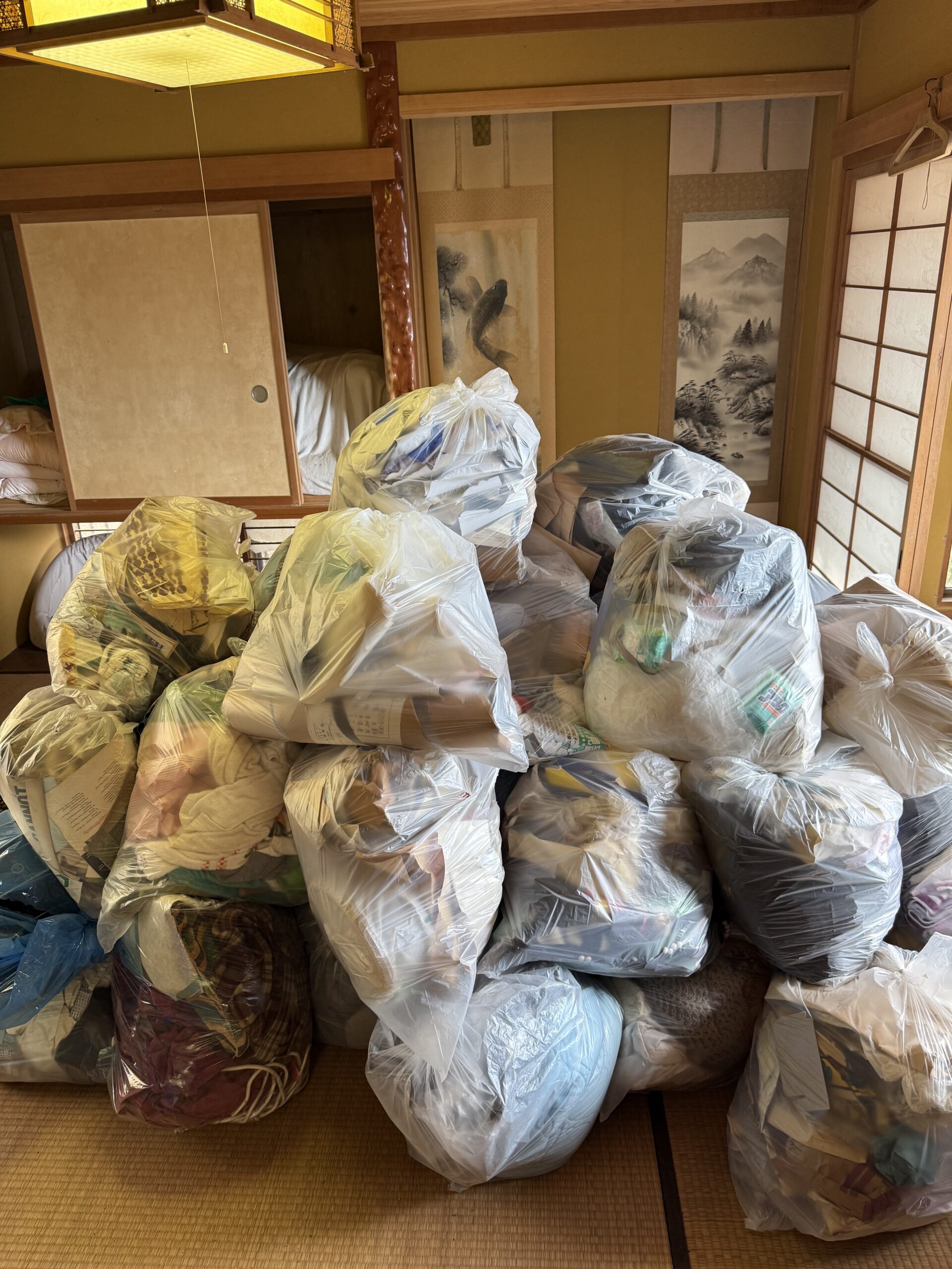 2026年2月21日 / 最終更新日 : 2026年2月21日 牧野田豊治 不用品回収処分 伊豆市一戸建て和室ゴミ袋、布団処分 今回のご依頼は伊豆市一戸建て和室ゴミ袋、布団処分です。izucleanホームページより電話でのお問い合わせがありました。階段が20段ぐらいあるのでおろして捨てに行けないということです。ゴミ袋が86袋布団が4人分セットです。お見積もりに伺いその場で正式依頼をしていただきました。スタッフ3名でリレー方式で軽トラックに搬出して乗せました。又別の部屋もまとめてご連絡をするとのことです。ありがとうございます。 Follow me!